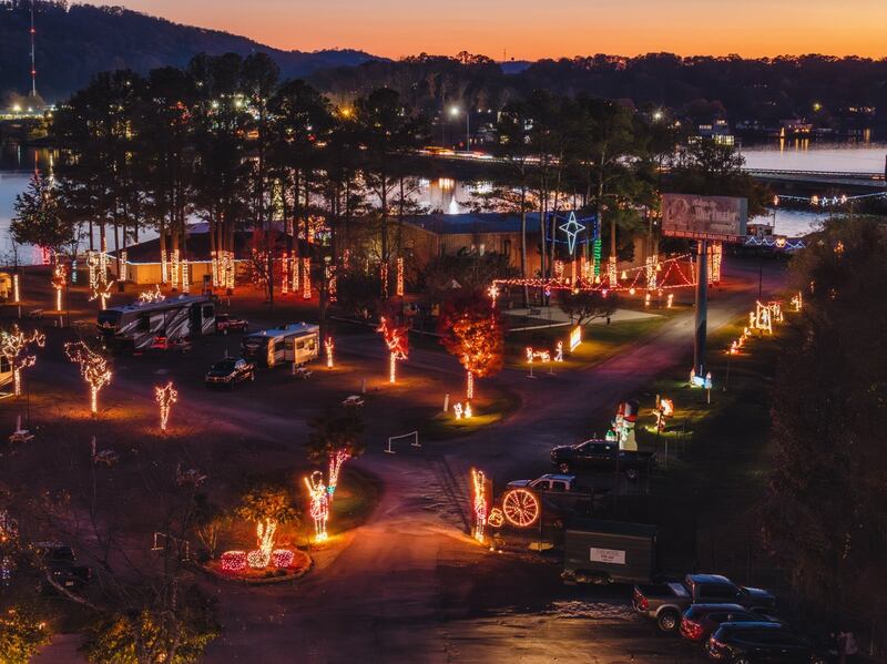 Take the scenic route and enjoy a beautiful tradition right by the Coosa River at River Rocks Landing in Gadsden. Light on the Landing offers a full mile of dazzling Christmas lights perfectly synced with holidays music Nov. 21 – Jan. 4. As you drive through the sparkling scene, there will be sing along carols and opportunities to capture cozy holiday photos. Ticket purchases are cash only starting at $5 for children and $8 for adults, so make sure to stop by the ATM!