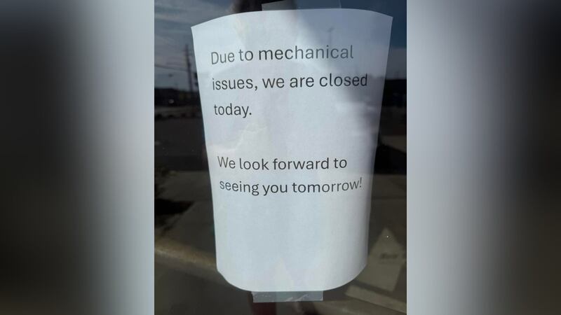 A sign is currently posted on the door of the Trussville Hero Doughnuts location indicating mechanical issues.